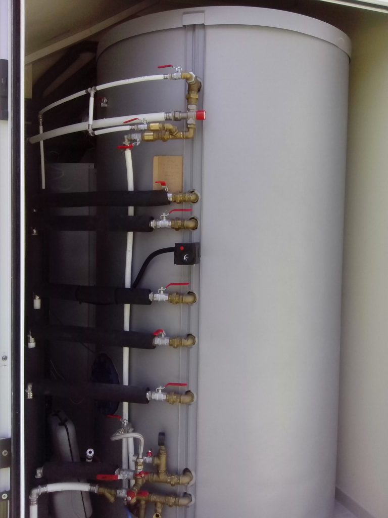 - Solar controller: measures the temperature difference between the panels and the tank and activates a pump to circulate the fluid to heat a storage tank for hot water and heating.